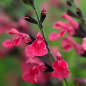 Salvia microphylla m. Tiges à base ligneuse, petites feuilles arrondies. Peu rustique, à protéger. Des fleurs de couleur rose ou rouge carmin font de la sauge de Graham une jolie plante ornementale.