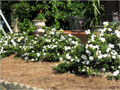 Sa floraison est plus abondante que celle de ses parents. A et destinée au jardin. Feuillage persistant, vert foncé. Floraison : fleurs blanches très doubles.