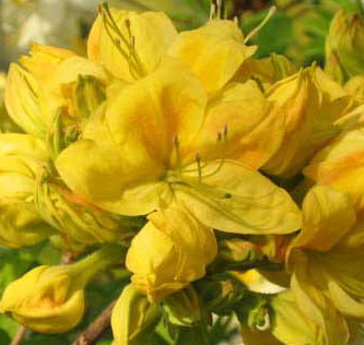 On distingue les azalées à feuilles caduques (très rustiques) des azalées japonaises à feuillage persistant (moins rustiques). Taille adulte (H x L): 1. Période de floraison : Mai. Les fleurs de cette azalée caduque sont jaunes, en entonnoir.