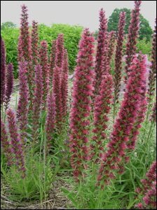 Les fleurs peuvent être utilisées en bouquet secs. Unusual burgundy red spikes which the bees swarm over.