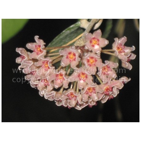 La floraison est capricieuse : elle a lieu le plus souvent en été, mais n’est. L’ hoya doit ses surnoms de fleur de porcelaine et fleur de cire à l’aspect cireux de ses fleurs , groupées en ombelles.