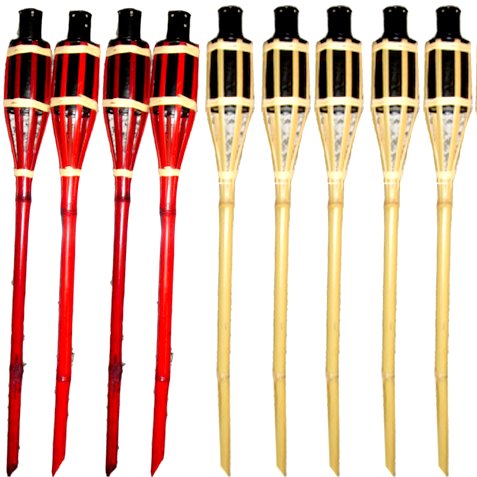 Torche de jardin Bambou cm. La mèche en coton est réglable. Utiliser uniquement. Support de torche en bambou métallique à planter.
